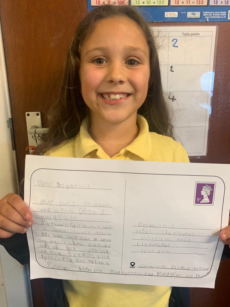 For some wonderful writing when working as part of a group sending a postcard about a Welsh myth,