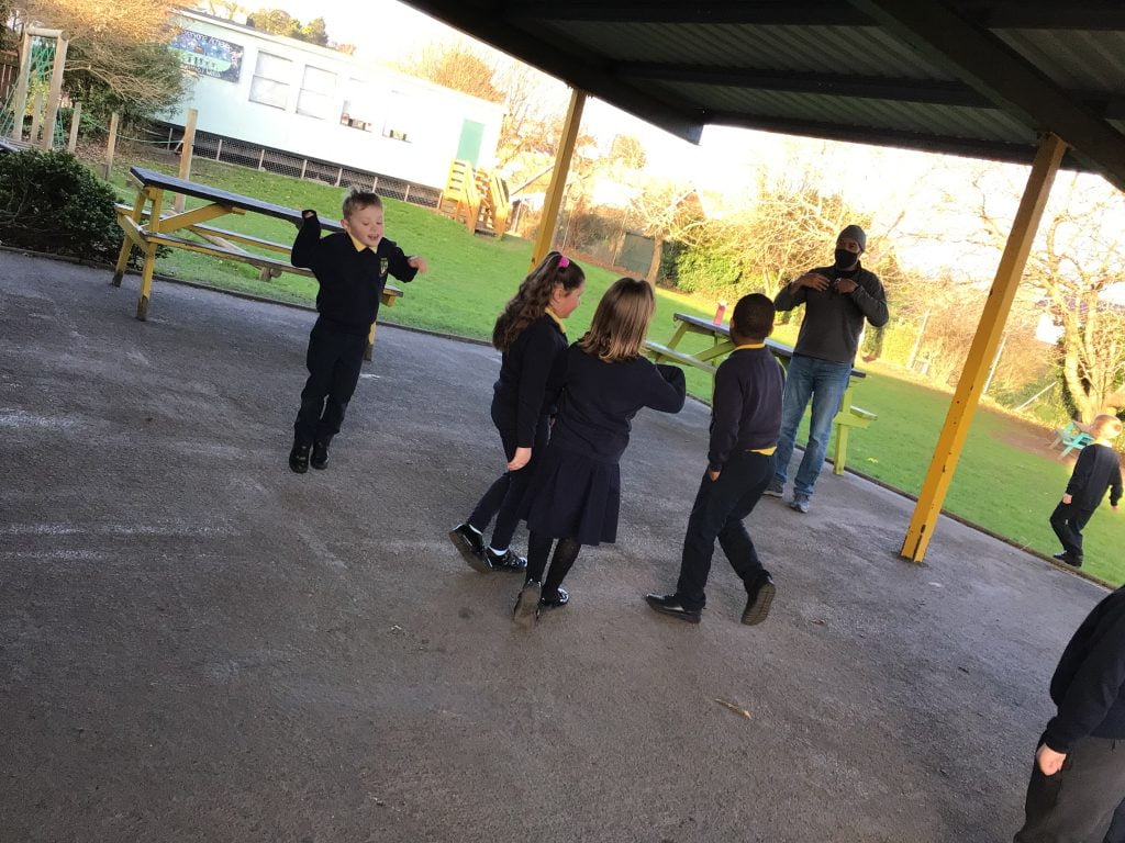 Story tell Phil used traditional folk tales to illustrate the good qualities we value as we grow up. Using their imagination, the children re-enacted work roles in a Welsh village inspired by the story of St Cadoc.