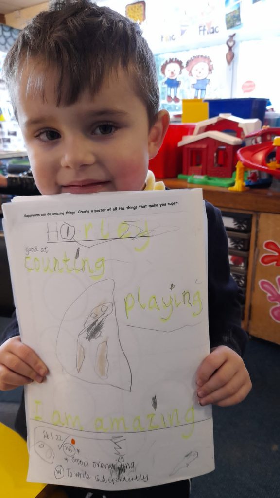 For being so enthusiastic about our puppet project. She enjoyed working collaboratively to animate puppets and acted out her own stories about friendship.