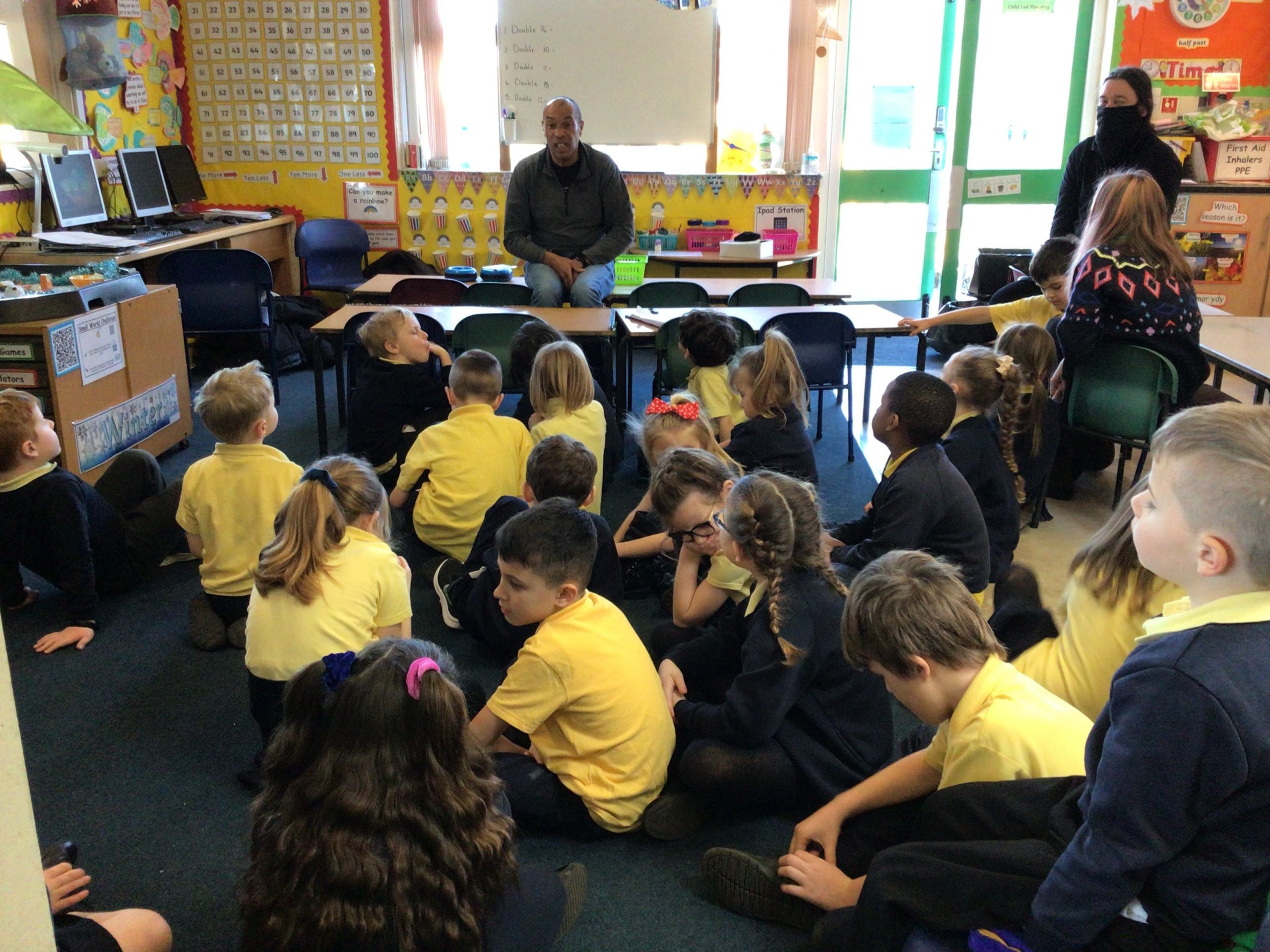 Story tell Phil used traditional folk tales to illustrate the good qualities we value as we grow up. Using their imagination, the children re-enacted work roles in a Welsh village inspired by the story of St Cadoc.