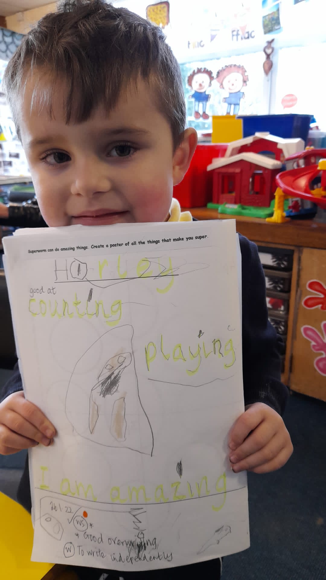 For being so enthusiastic about our puppet project. She enjoyed working collaboratively to animate puppets and acted out her own stories about friendship.