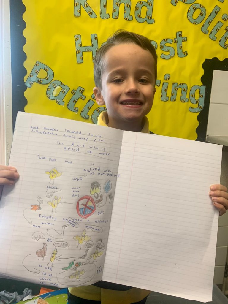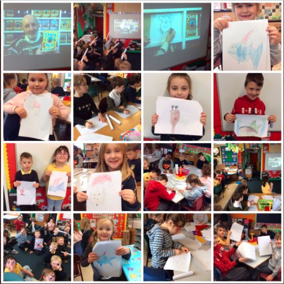 Class 2 had a wonderful end to the week with an online visit from children’s author Nick Sharratt. They had lots of fun listening to him read his stories – particularly ‘Oh No! Shark in the Snow! They also had a great time drawing characters from his stories