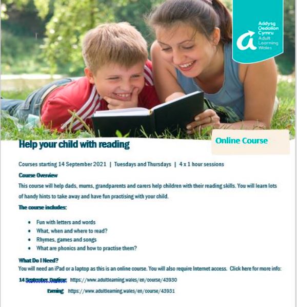 Help your child with reading: Courses starting 14 September 2021 | Tuesdays and Thursdays | 4 x 1 hour sessions.